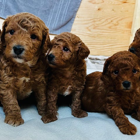 Mamma är en Labradoodle hon också. Jättesnäll, kärleksfull och glad. Hon har gjort patella, hjärt och ögonlysning där allt visade friska resultat.