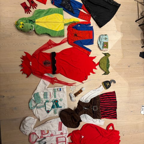 Utklädningskläder, piratdräkt, brandman till barn i stl 110/116