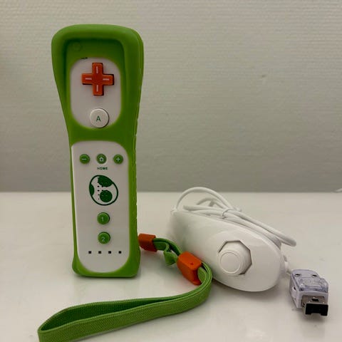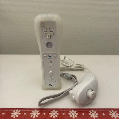 Remote motion plus och Nunchuk i blå färg. Tillbehör för Nintendo Wii & wii U spelkonsol som används för rörelsestyrning vid spel.