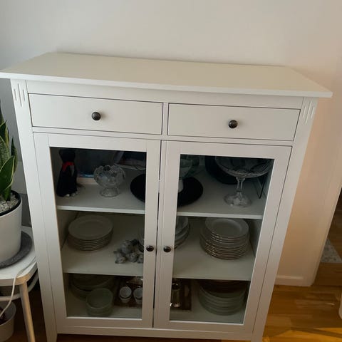 Fräscht skåp mex plats för glas upptill och förvaring nedtill. Bäres ner 2 trappor(lgh)