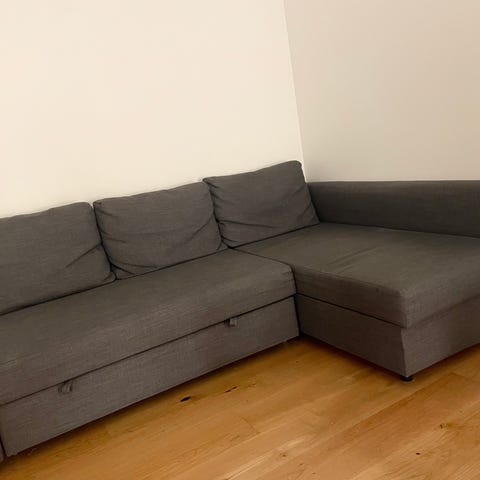 Bra skick! IKEA FRIHETEN hörnsoffa med bäddfunktion i grått tyg. Soffan har måtten 230 cm i bredd och 151 cm i djup, med sovyta 140x200 cm. Materialet är slitstarkt tyg och soffan är utformad för vardagsrum med möjlighet till extra sovplats. Priset ärförhandlingsbart vid snabb affär.