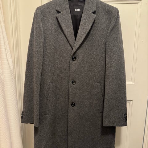 Hugo Boss Rock i storlek 48 för herrar. Rocken är tillverkad av ull och har en grå färg. Den passar för användning som ytterplagg vid kallare väder. Har även en avtagbar innerväst