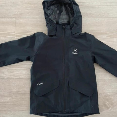 Jättefin svart jacka från Haglöfs i storlek 134. Vind och vattentät.