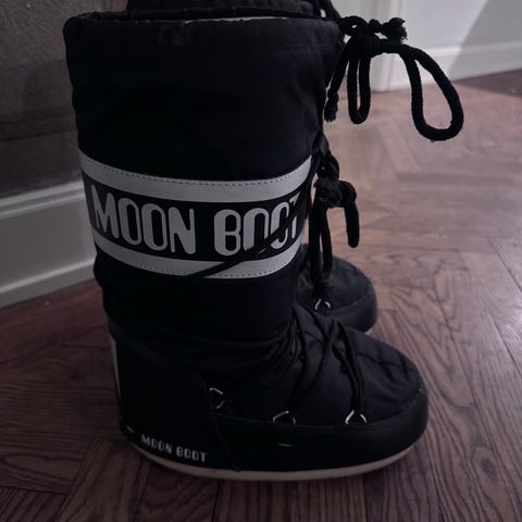 Helt nya moon boots som aldrig använts. Allt originalt finns kvar. kartongen har en liten skada. Kan mötas i Stockholm eller frakt STORLEK 33-34