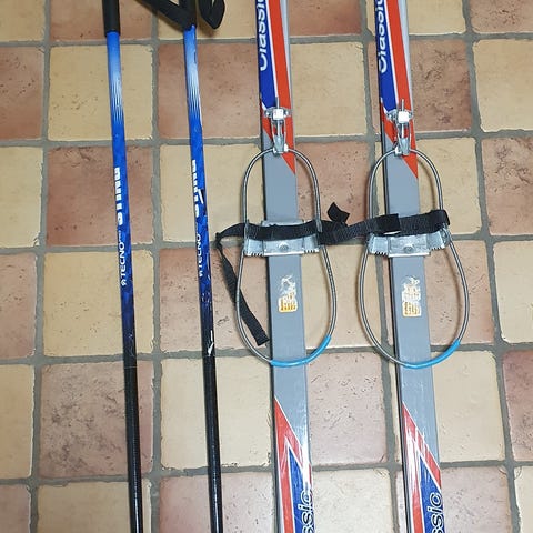 Skidor och pjäxor är använda någon gång om året, vilket såklart syns, men funkar fint.