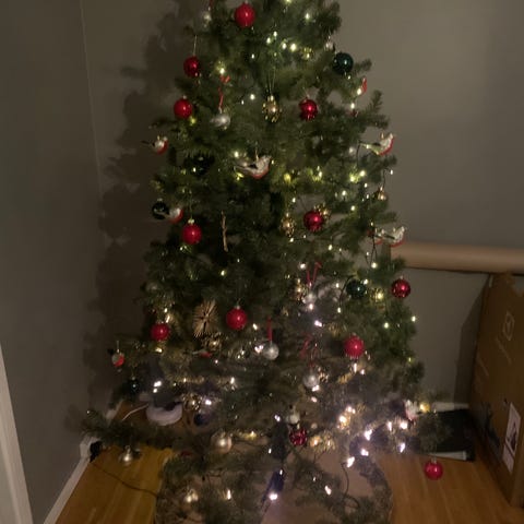 Julgran bortskänkes. Ca 15 cm av toppen på julgranen har gått av o julgranen är lite spretig. Nu är den drygt 160 cm i höjd. Fyller ändå syftet. Gärna snabb upphämtning.