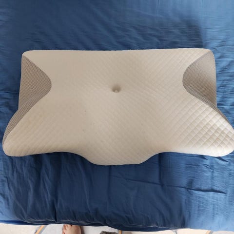 Memoryskummet omfamnar huvud, nacke och axlar, vilket minskar belastning och spänningar. Det håller en jämn temperatur och har små hål i kärnan som gör att luft kan cirkulera och föra bort fukt.
