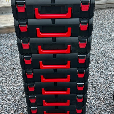 Milwaukee verktygslåda . Utrustad med flera fack och handtag för enkel transport och förvaring av verktyg.