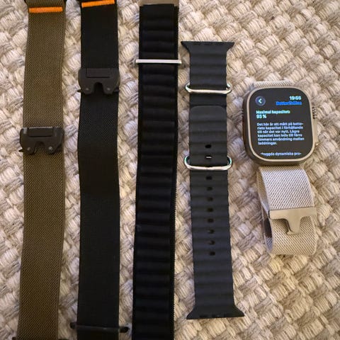 Säljer en Apple Watch Ultra 3 (49 mm) i Black Titanium med Black Ocean Band.