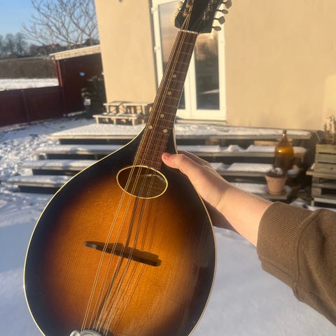 Instrumentet på bilden är en mandolin av märket Levin.