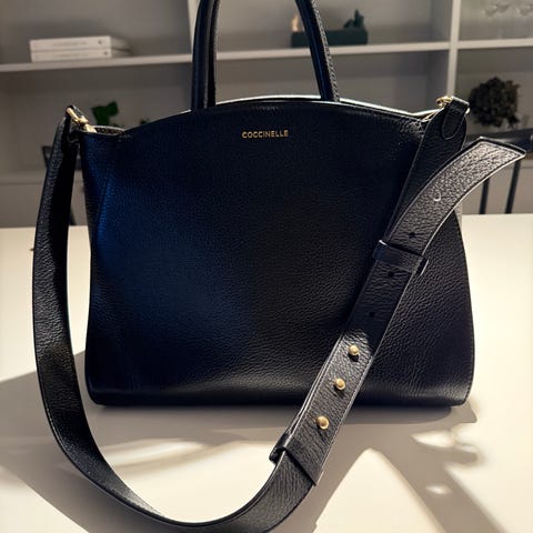 Elegant och rymlig handväska i äkta slätt läder. Insidan är välorganiserad. En justerbar och avtagbar axelrem medföljer, vilket gör att du kan bära väskan bekvämt som axelväska eller crossbody.