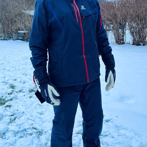 Stilrent och välvårdat skidset i nyskick säljes. Jacka i storlek 42 (rymlig M) och byxor i storlek 38.