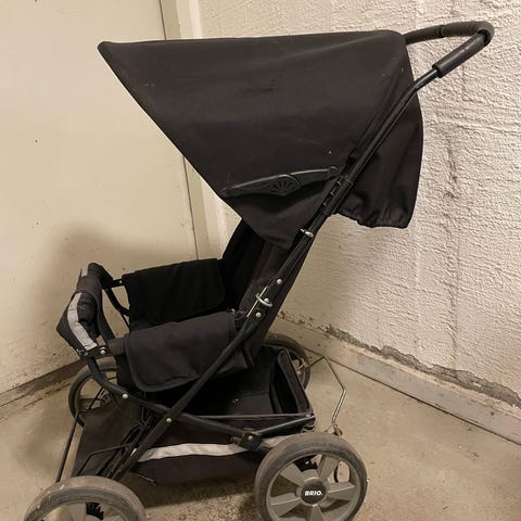 Barnvagnen inkluderar en svart sittdel samt en liggdel med geometriskt mönster i svart och vitt. Tillbehör som skydd för ben och regnskydd medföljer. Passar för barn och är utformad för att användas i olika väderförhållanden. Det var ett tag sedan vagnen användes så det kan vara bra att se över ex däcktryck innan användning.