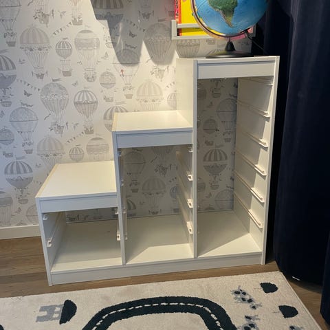 IKEA Trofast, två stycken, fin barnmöbel för förvaring för prylar, gosedjur mm med flera lådor i olika storlekar och färger (grön, röd, blå) och vit stomme. Bägge är i fint skick, enstaka lätta märken efter användning (de har ju stått i barnrum.…). Säljes pga ommöblering och då fick de inte plats så som jag hoppats..