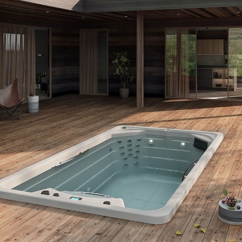 Anledningen till två separata delar är att fysisk träning, oavsett om det är motströms simning eller någon annan vattenfitness aktivitet normalt sett kräver lägre temperaturer, som är mycket lägre än i hydromassage spabadet.