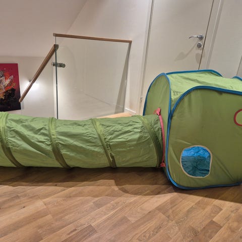 En rolig och stimulerande leksakstunnel för ditt barn Perfekt som älskar att utforska och leka. Tunneln är lätt att förvara då den kan fällas ihop.