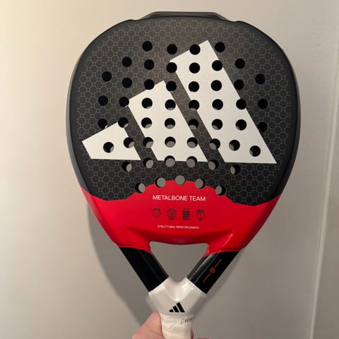 RS PRO edition Cayetano 2022 racket med spricka på en sida och toppen som ni ser på två sista bilderna. Fungerar riktigt bra trots spricka som märks förvånansvärt lite. Säljs för jag fick nytt rack till jul, hade fortsatt spela med det annars.