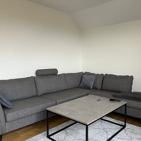 Alla kuddar och dynor har dragkedja och är tvättbara. Soffan säljes med nytvättad klädsel.