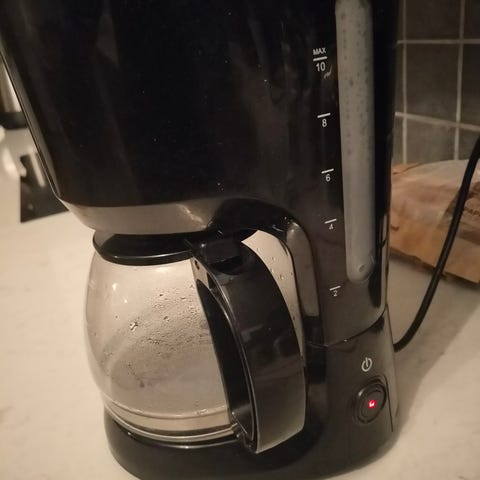 Moccamaster KBG kaffebryggare i svart färg. Utrustad med en glaskanna och handtag. Designad för bryggning av kaffe med standardstorlek.