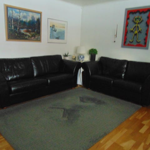 Skinnsoffa 3-sits med sittpuff