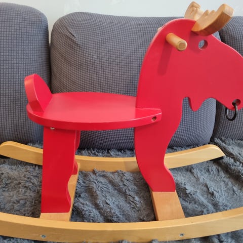 Gunghäst i trä, vit färg. En barnleksak utformad som en gunghäst med enkel och hållbar design.