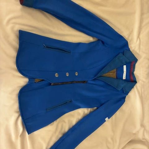 Spooks kavaj i marinblå med royalblåa detaljer på kragen och fickor. Kavajen är i storlek M och är i nyskick
