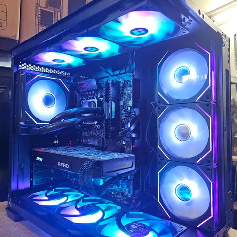 💥 Funktionstestad/Stresstestad/prestandatester har utförts, & allt fungerar utmärkt: 100% stabil & tillförlitlig dator, inga dolda fel eller överhettningsproblem. 3DMark Fire Strike uppnådde en poäng på 19633. - 3DMark Time Spy uppnådde en poäng på 7625. - Vid en upplösning på 2560x1440 registrerades en genomsnittlig FPS på 52.38 i Cyberpunk. Datorn är inrymd i ett chassi med fönster för insyn i datorn, och med 6 fläktar för optimal kylning ,4 av fläktarna styrs med en intern RGB-belysning "hub"