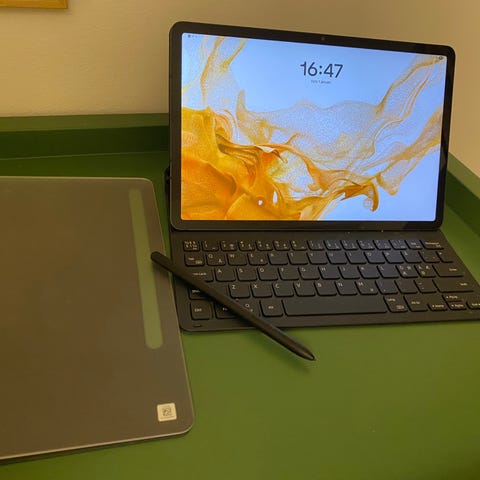 Säljer min Samsung Galaxy Tab S8 med 128 GB lagringsutrymme som är sparsamt använd och i mycket fint skick. Allt fungerar som det ska, inga repor på skärmen. Galet bra skärm och högtalare med ett batteri som håller i dagar.. Sitter ett magnetiskt skal för att kunna ställa upp den. Perfekt för surf, studier, film, spel och arbete.