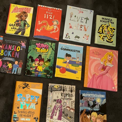 Skriv vilka böcker du vill ha, betalning sker via swish, vill du ha det skickat kan jag skicka via blocket, dhl eller postnord.