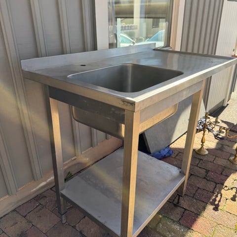 Diskbänk i rostfritt stål med diskho och olika diskkorg