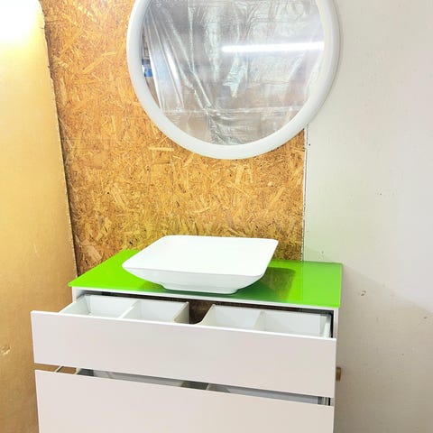 Badmöbelset i trä med spegel och handfat
