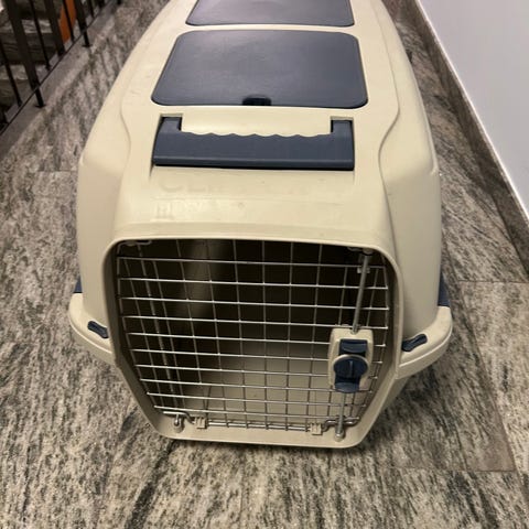 Stabil och rymlig transportbur från Petmate, modell Vari Kennel Ultra. Perfekt för större hundar och trygg transport i bil eller hemmet.