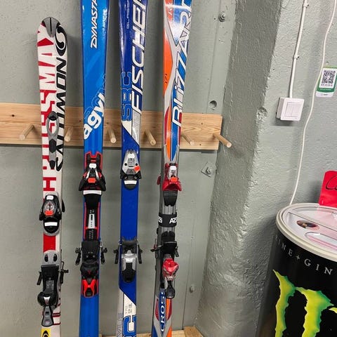 Slalomskidor, stavar och pjäxor stll 38.