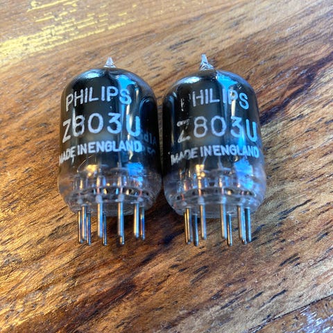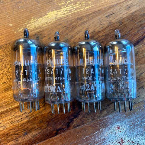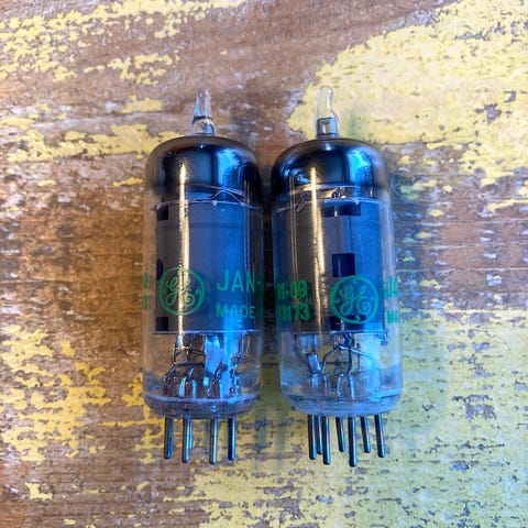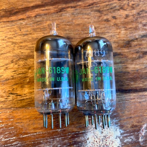 4 stycken Philips (GE) elektronrör JAN 6189W (Joint Army Navy). Ej testade men ser ut att vara i fint skick. Säljes utan garanti eller returrätt.