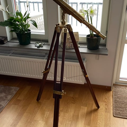 Stativ i trä och metall med justerbar höjd. Köpt på New port NK.