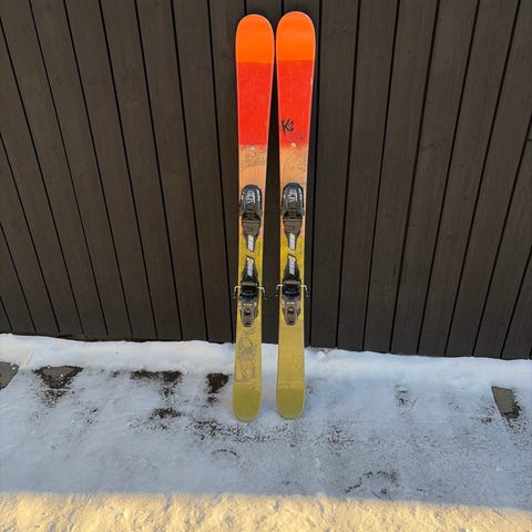 K2 twintip 119cm (röd-gröna), bra skick fina Marker bindningar - 500kr
