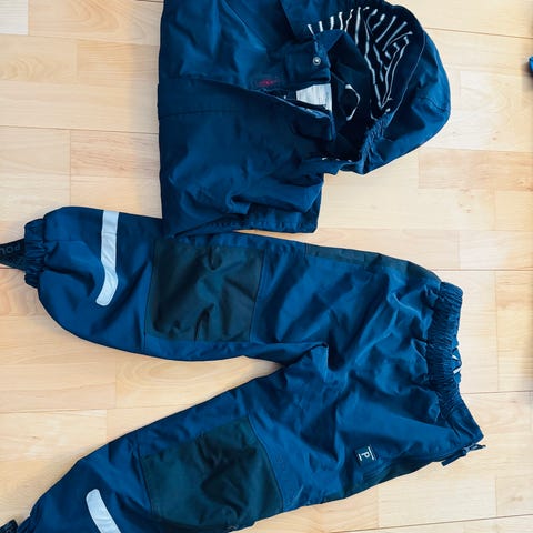 Klassiska skalbyxor från Polarn O. Pyret (WeatherPRO) med hängslen, förstärkta knän och reflexdetaljer.