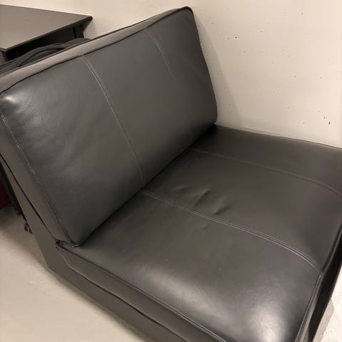 Fåtöljens bredd är cirka 100 cm. Höjd och djup samma som soffan.