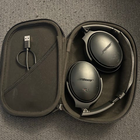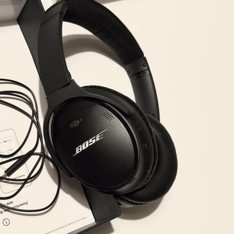 Bose QC25 aktiva brusreducerande hörlurar i mycket gott skick. Säljs med låda, flygadapter och en extra iPhone-belysningsadapter.