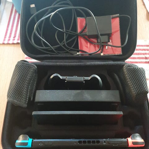 Stort Nintendo Switch paket med många spel och tillbehör.