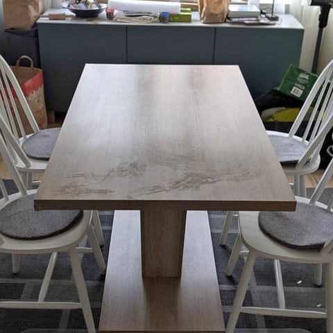 Säljer matbordet tillsammans med stolarna. Allt är ner monterat därav har jag inga fler bilder. Andra bilden är från Jysk hemsida fast i svart.