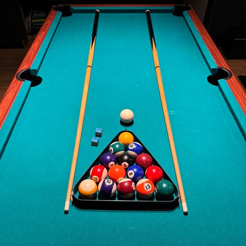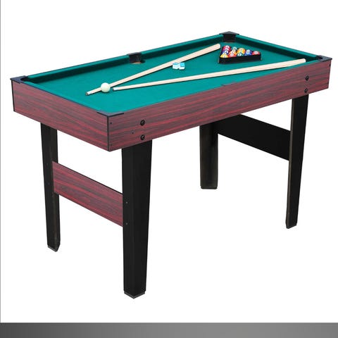 Mindre biljardbord i gott skick. Inklusive 2 biljardköer (107 cm), biljardbollar, krita och borste.