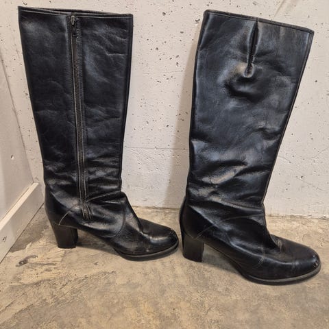 Stövlarna är använda och har en vacker patina som bara förstärker deras karaktär och autenticitet. Perfekta för dig som uppskattar kultur, hållbarhet och unika plagg med själ – eller som ett dekorativt