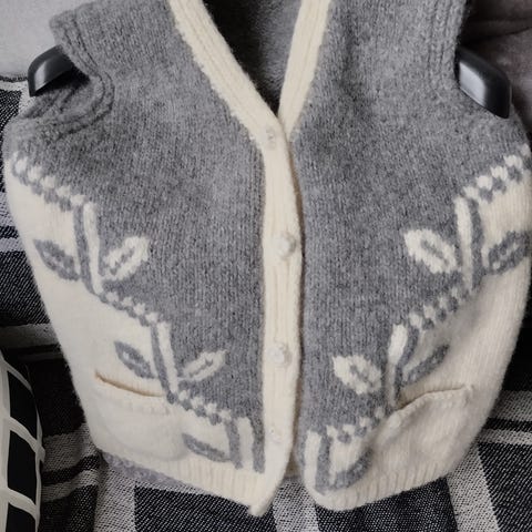 En tröja i nyskick. Vinröd Figursydd med resår i midja. Kan användas på fler sätt som krage eller huvtröja.