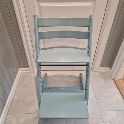 Stokke barnstol i rosa färg. Färgskav finns