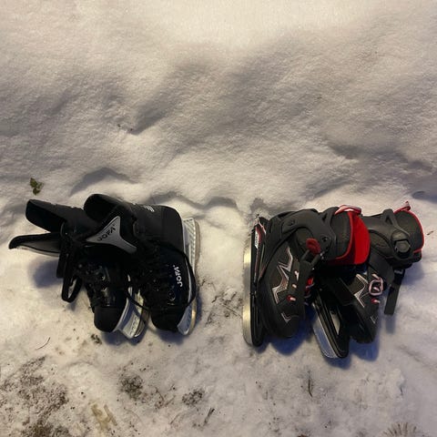 Skridskor i storlek 31-32 med tillhörande hjälm. Hittar inte storleken ca. 20-21 cm invändigt. Borde passa barn 6-8 år. Hämtas i Skänninge. Mycket bra skick.