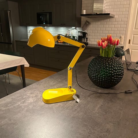 Bordslampa Lumiere XXS från Foscarini. Finns med glasskärm i olika färger. Tyvärr har denna spruckit. Ny skärm kostar ett par tusenlappar. Säljer lampan, som fungerar, för 1000kr. Nypris hos ex Nordiska Galleriet är 8000kr.