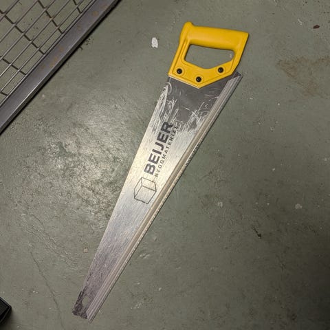 Elektrisk cirkelsåg med blått plasthus. Utrustad med handtag för styrning och kabel för strömförsörjning. Används för sågning av trä och andra material. 710W. Väldigt lite använd.
