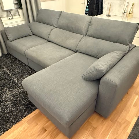 Har en liten fläck på schäslongen vi inte har lyckats få bort (se bild) annars bara märkbart använd.