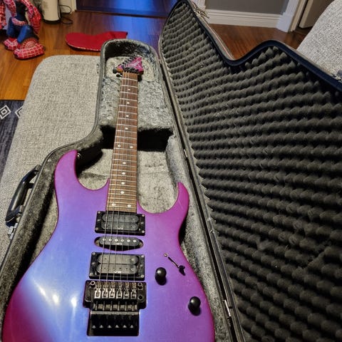 En fantastisk gitarr, som jag köpte i USA 1995. Fortfarande i mycket fint skick. Lättspelad, underbar hals, grymma EMG-mickar. Ren ljud- & spelglädje.